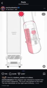 3. Vehicle dynamics: Early reports suggest the SUV may have been involved in a tyre burst before the collision, causing it to lose control and hit a stationary truck.