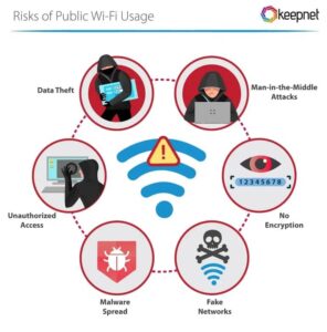 Cybercriminals sometimes set up fake Wi-Fi hotspots with names that look legitimate, such as “Free Airport Wi-Fi” or “Cafe Guest Network”. Once you connect, they can monitor activity or capture sensitive information.